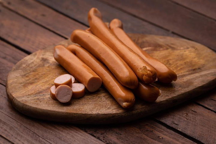 Brak soli peklującej może skutkować szarawym wyglądem na przekroju parówki.
